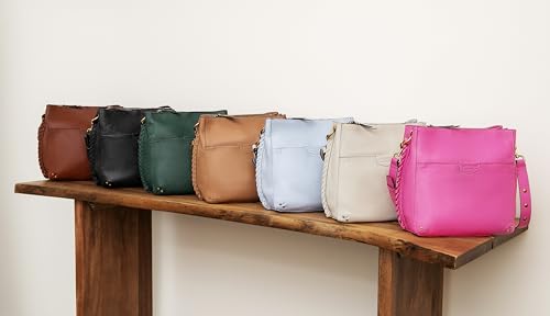 100% Genuine American Leather Luca Triple Entry Crossbody Purse The Luca Crossbody Handbag from American Leather Co. seamlessly blends fashion with functionality, making it a must-have addition to your wardrobe. Crafted from 100% genuine American leather, this buttery soft accessory exudes both luxury and practicality. Enjoy the convenience of hands-free carrying with its versatile design, featuring a wide strap and crossbody style that evenly distributes weight, reducing strain on your shoulders for comfortable wear throughout the day. Delicately crafted with attention to detail, this crossbody bag boasts our triple entry orginization with dual magnetic closure sections along with a center section that has the security of a full zip, ensuring your belongings stay secure on the go. Adjust the crossbody strap to your liking with a maximum drop of 27 inches. Stay organized effortlessly with our crossbody purse that features 2 exterior pocket for quick and easy access and 1 interior zip pocket, 2 slip pockets, 1 main zipper compartment, and 2 main compartments with magnetic snap closure. The fabric lining adds a touch of practicality to your everyday routine. Compact yet spacious, this crossbody purse measures 10″ L x 5.5″ W x 9.5″ H. An authentic brand, American Leather Company handbags are designed to make you feel confident and comfortable. We carefully source only the best materials, using special techniques to ensure that our pieces are not only stylish but also built to last. Every stitch and detail in our collection reflects an unwavering commitment to quality and craftsmanship.
